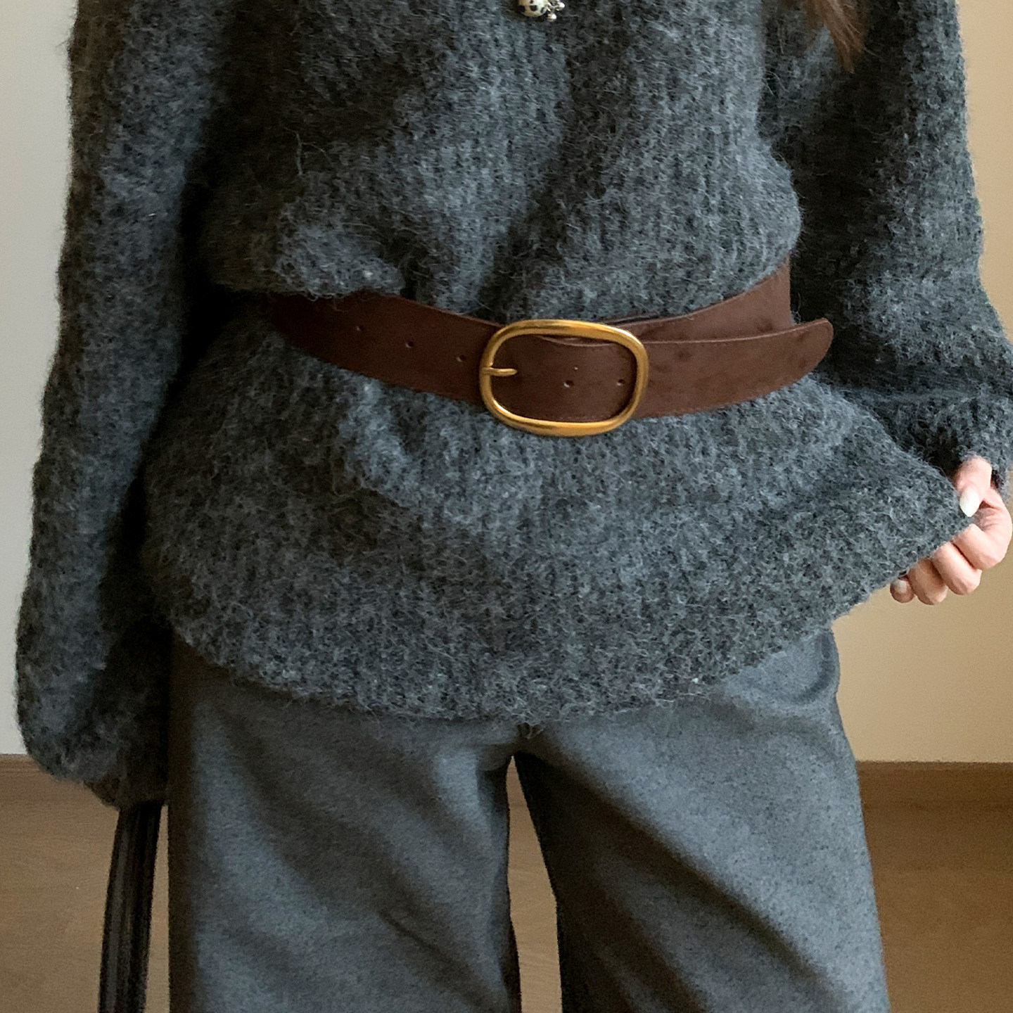 复古宽版美式棕色麂皮腰带女款腰间高级感配毛衣装饰时尚显瘦皮带