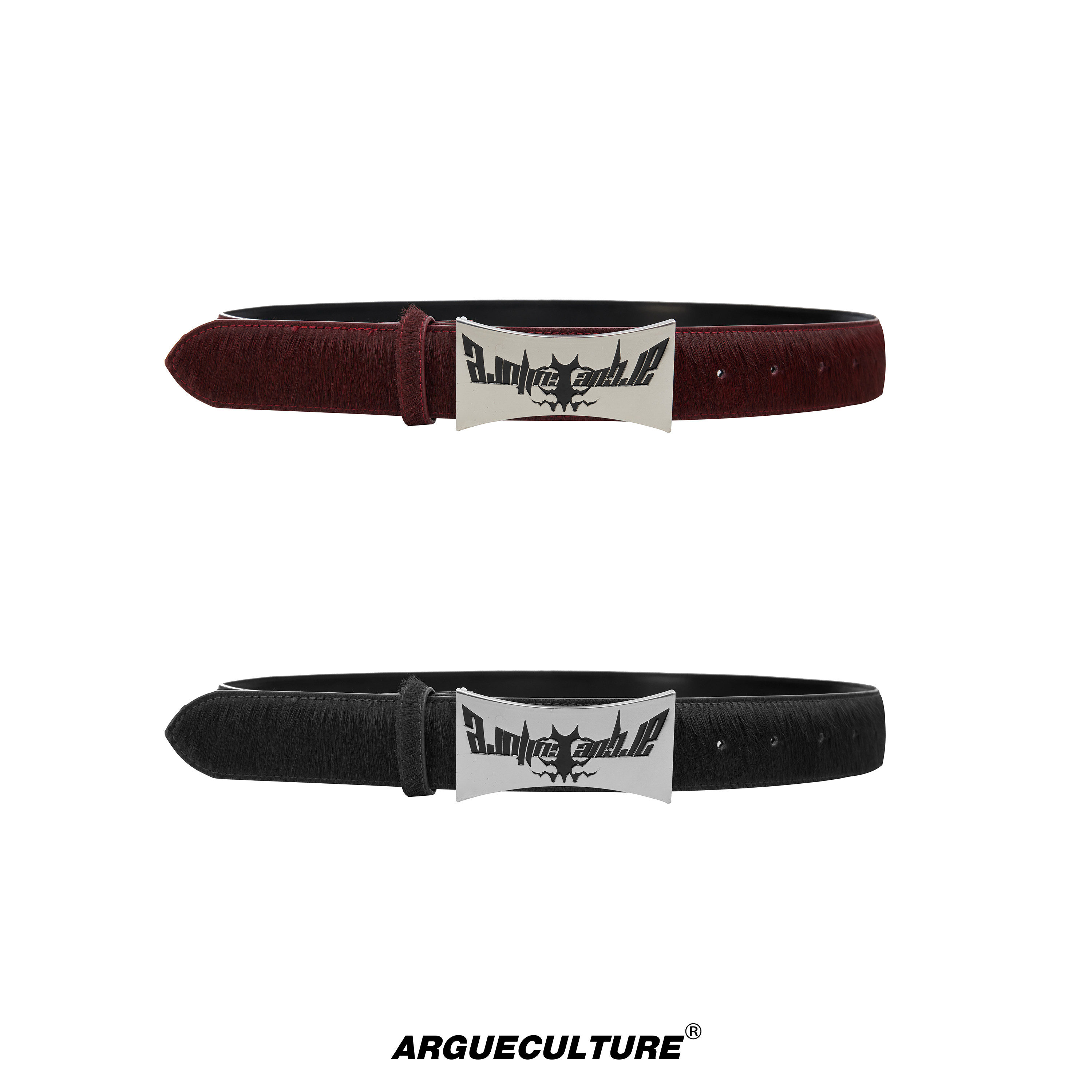 ArguE CulturE重磅做旧金属牌真皮马毛皮带小众复古高级百搭腰带