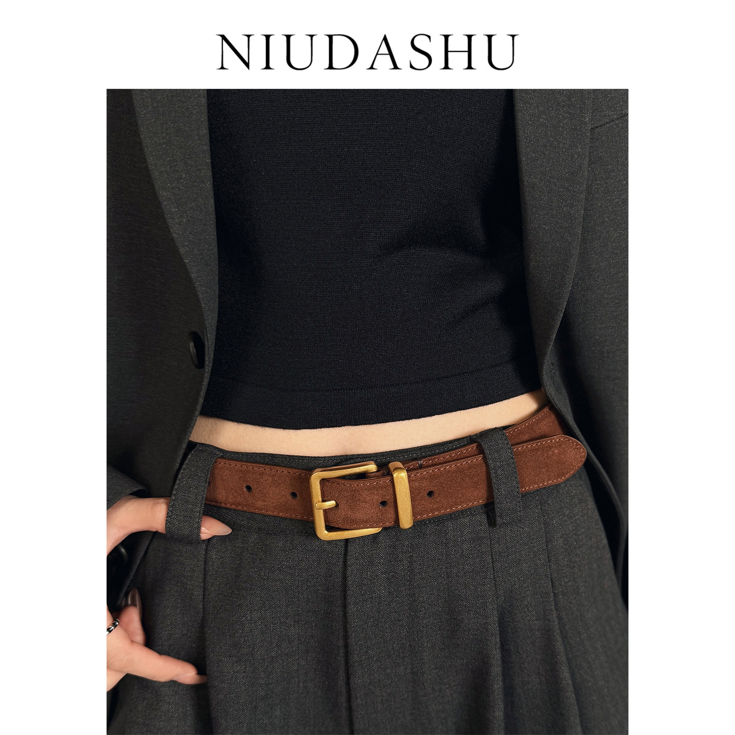 秋冬绒面皮带女真皮装饰简约百搭小众设计感针扣配裤腰带女潮腰封