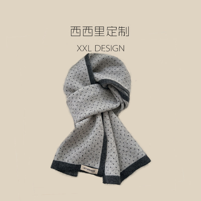 小波点围巾女冬季灰色高级感含羊毛百搭加厚保暖护颈针织毛线围脖