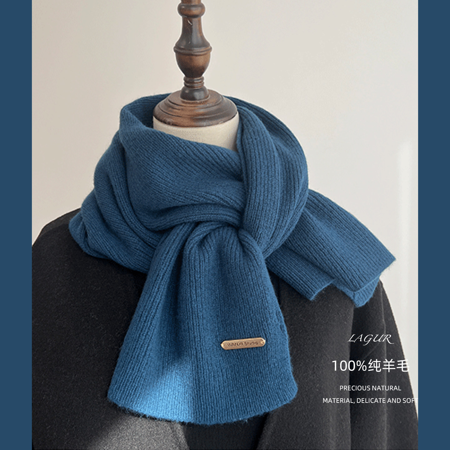 ins博主韩版小众简约百搭贴标围巾女秋冬季保暖学生纯色围脖情侣