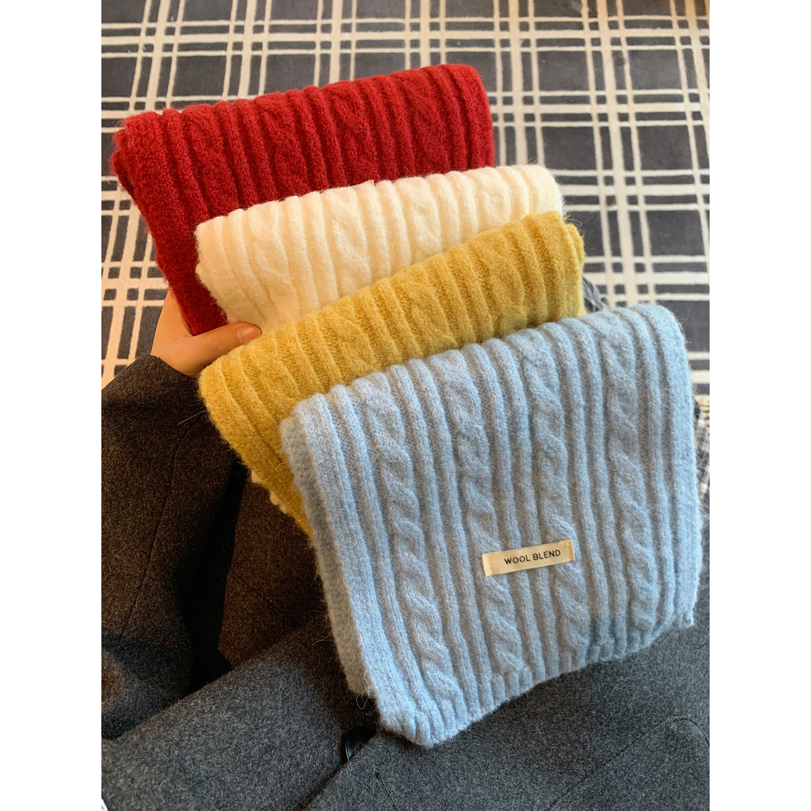 馨帮帮 加厚防冻保暖纯色情侣围脖时尚复古百搭麻花针织围巾女冬