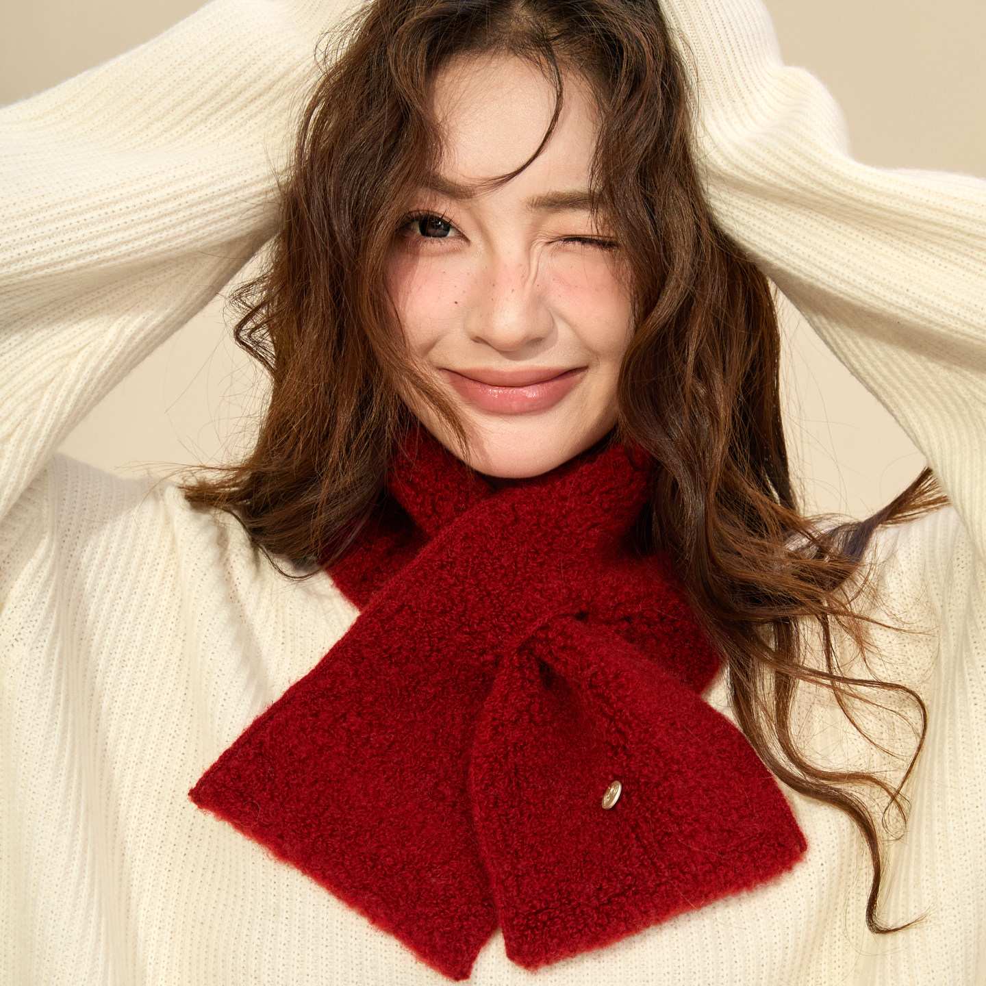 玖慕纯羊毛小围巾女秋冬季保暖新年红色交叉护颈妈妈防风女生围脖