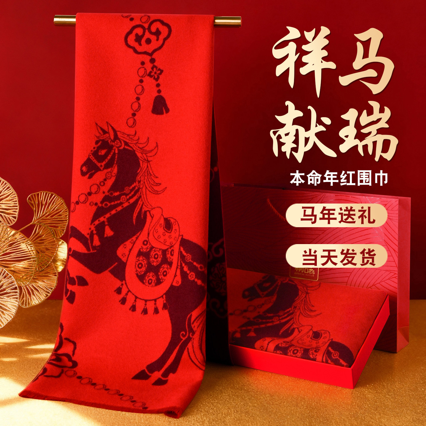 2026马年本命年会中国红围巾男女式冬季红色围脖过年新年老人生日