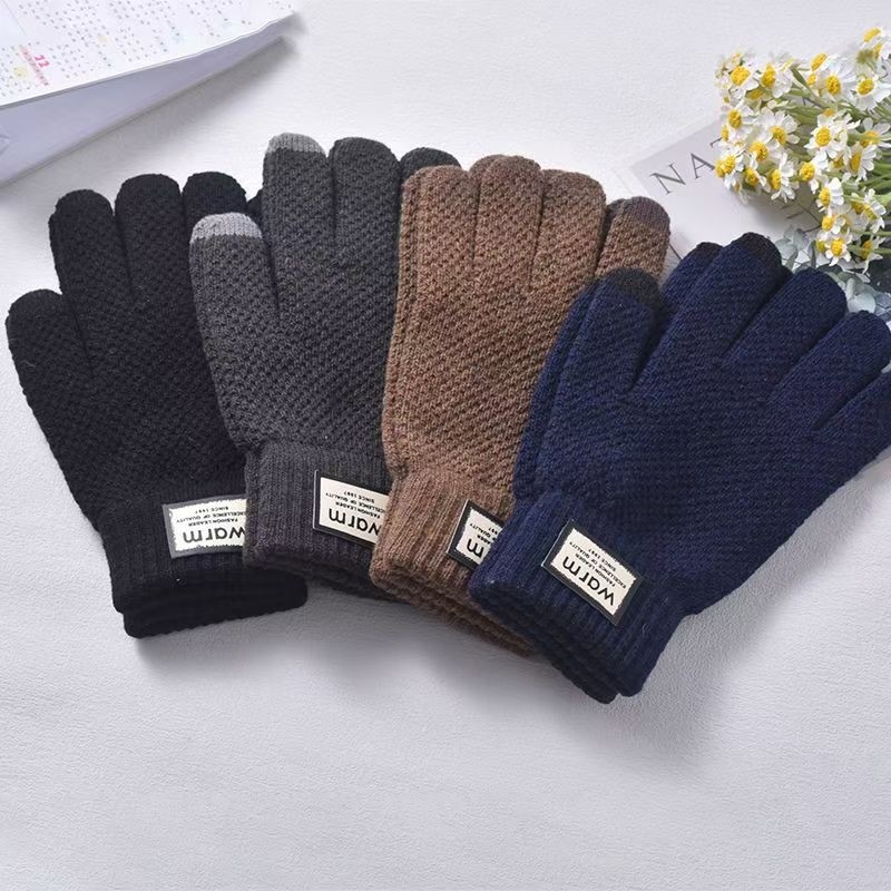 可触屏棉手套男士冬季保暖加绒加厚毛线针织骑行男女同款防寒手套