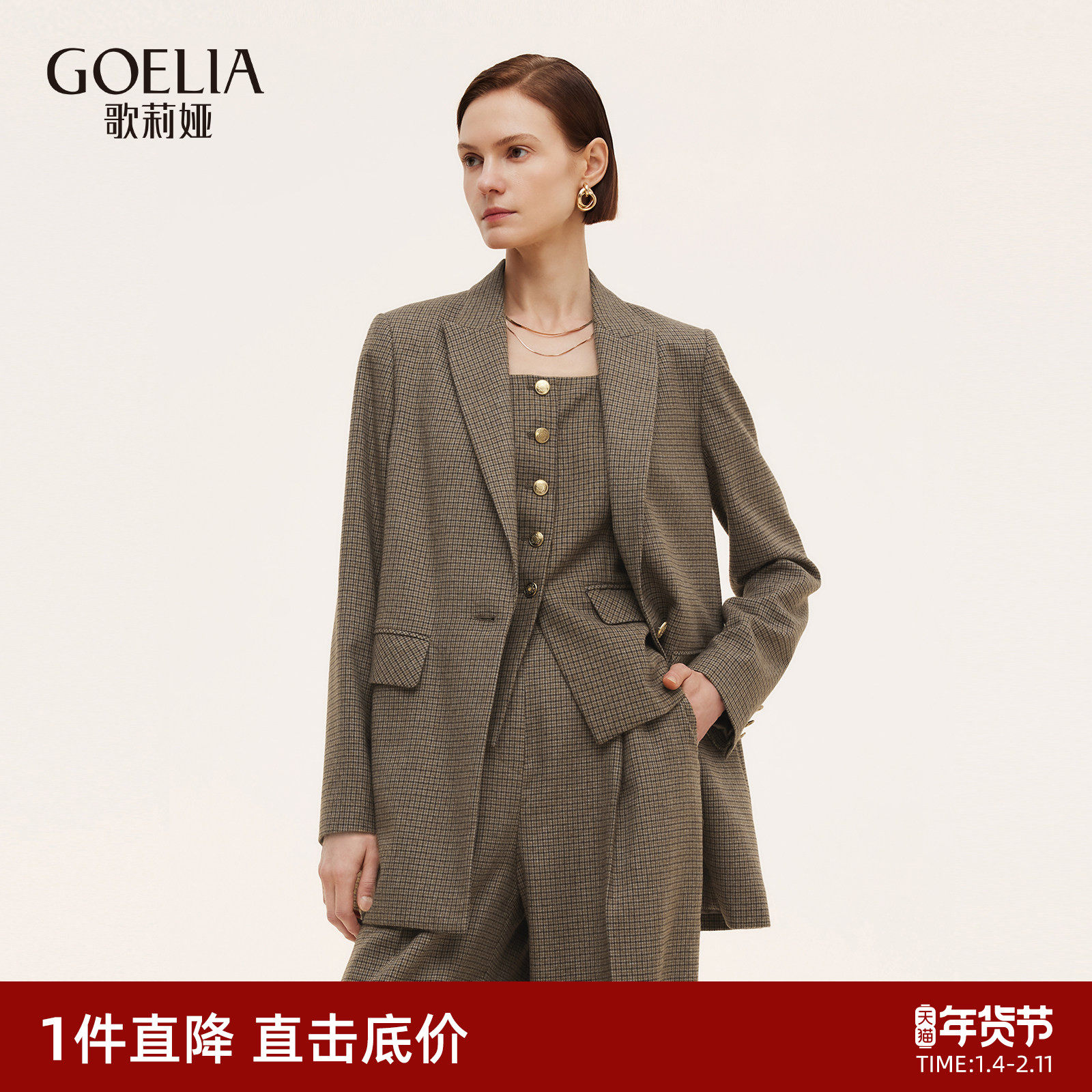 首降3折|歌莉娅复古格纹西装女士外套2025新款秋季职场通勤穿搭