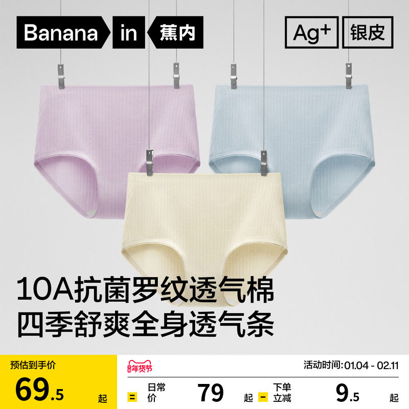 3件|蕉内银皮300S女士内裤纯棉透气裆亲肤莫代尔短裤低腰女三角裤