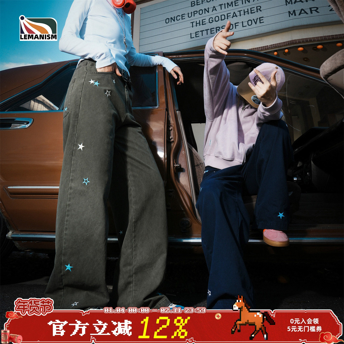 lemanism美式潮流满印星星刺绣牛仔裤男2025新款情侣款休闲裤子
