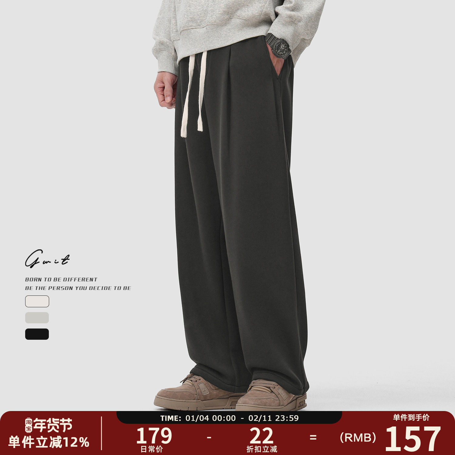 GWIT 三色加绒经典款垂感阔腿卫裤冬季重磅加厚保暖运动休闲裤男