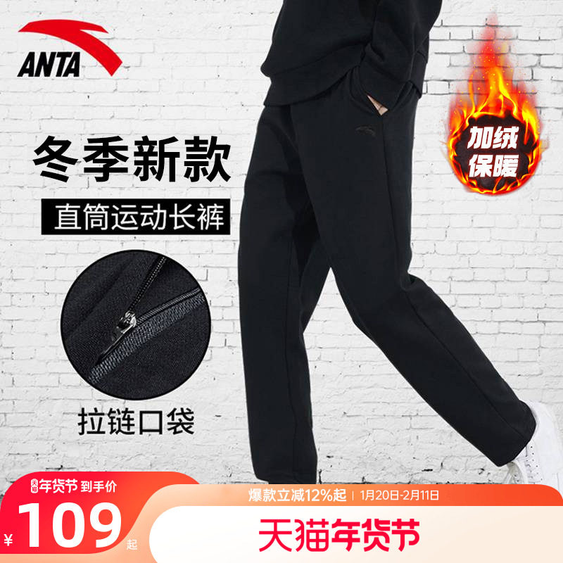 安踏运动裤男裤加绒裤子冬季新款男士加厚长裤保暖卫裤直筒休闲裤