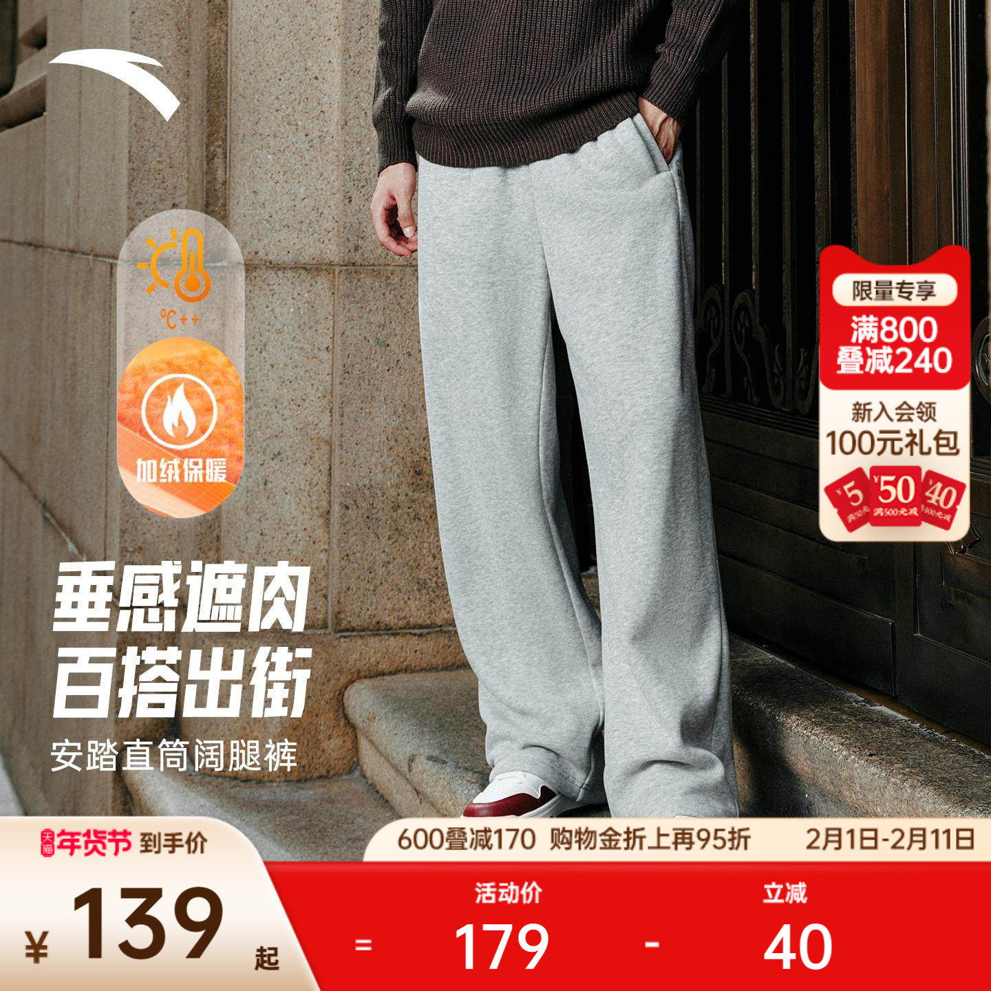 安踏男裤冬季保暖加绒运动裤子休闲直筒卫裤2025新款舒适时尚宽松