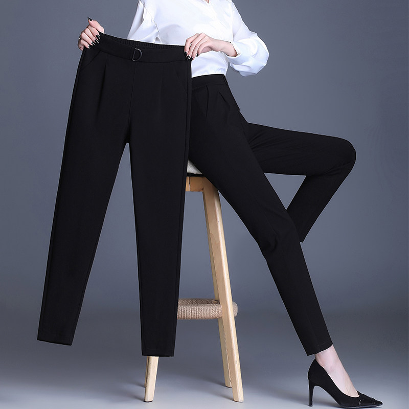 春秋新款女士高腰弹力大码小黑裤修身显瘦时尚百搭妈妈直筒小脚裤
