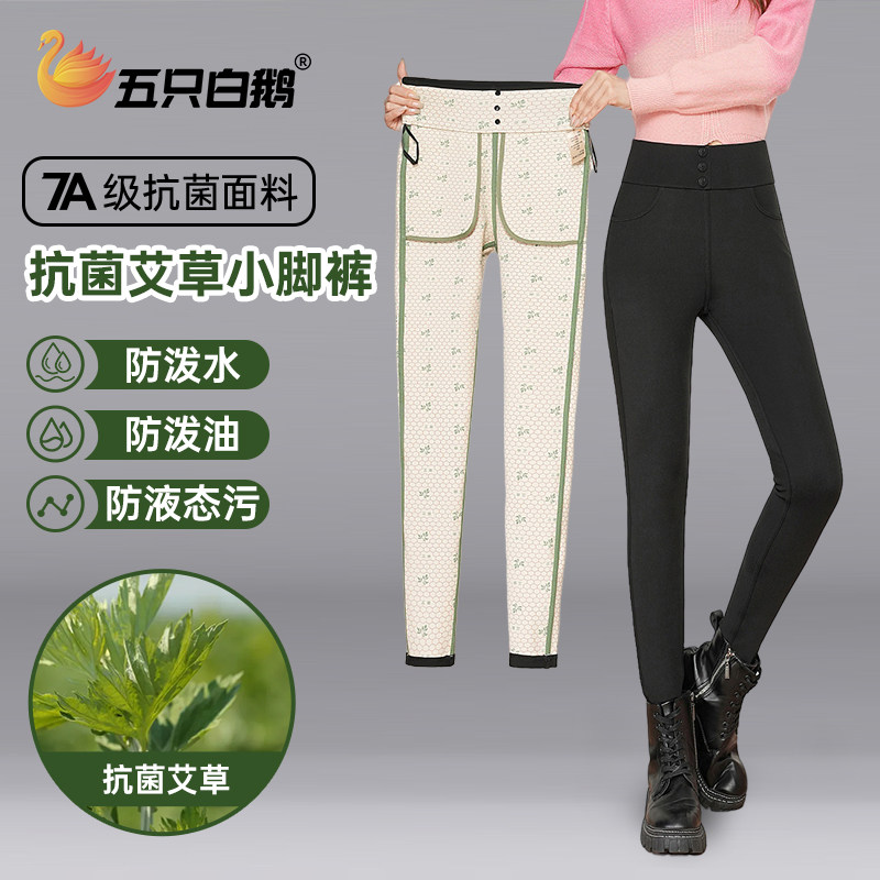 五只白鹅秋冬艾草无痕抗菌除螨防污防水小脚裤女士高腰显瘦铅笔裤