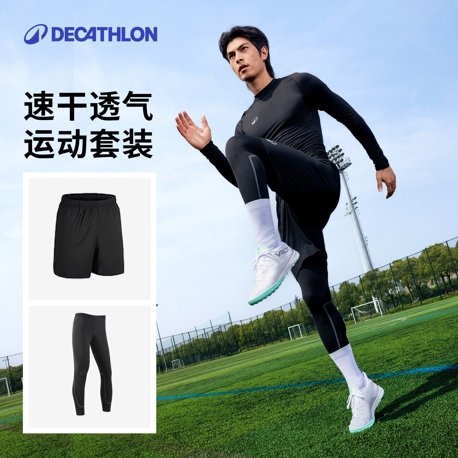 迪卡侬压缩裤紧身跑步健身加绒训练打底足篮球运动跑步套装男SAY2