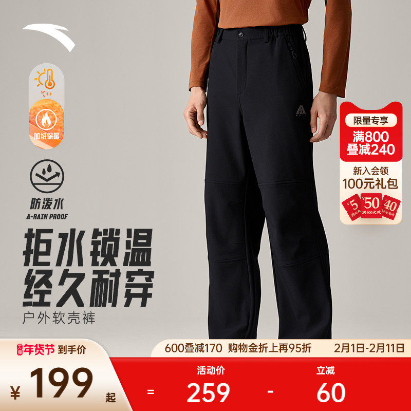 安踏三防加绒户外裤丨大地之壳3.0梭织运动长裤男冬季保暖软壳裤