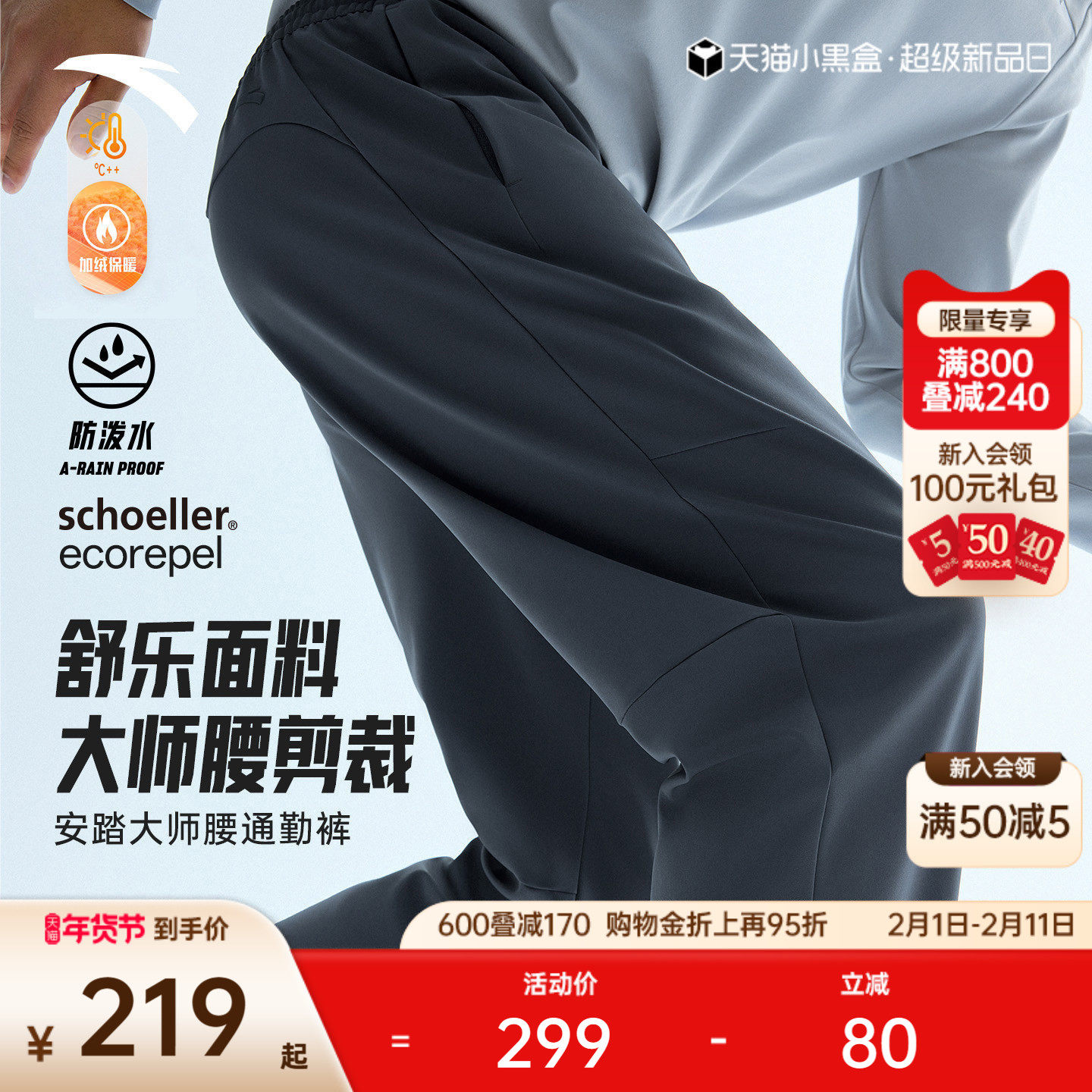 安踏舒乐型动裤丨锥形运动长裤男裤新款软壳裤通勤加绒直筒休闲裤