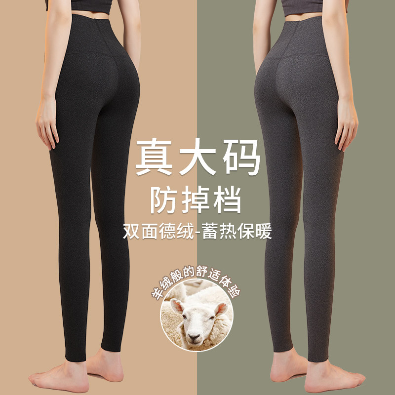 2025新款双面德绒发热大码秋裤女内穿紧身弹力200斤胖MM保暖打底