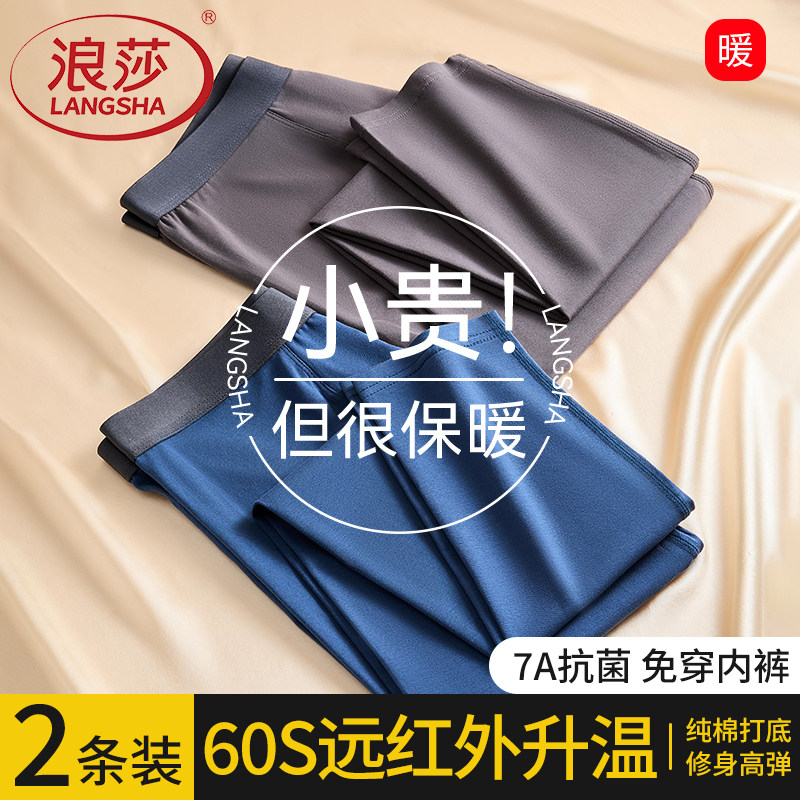 浪莎秋裤男士纯棉保暖裤男款线裤薄款衬裤打底免穿内裤男生棉毛裤