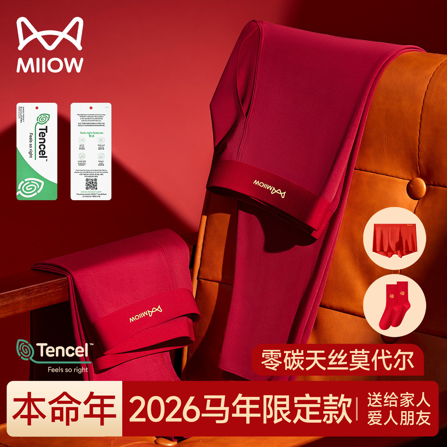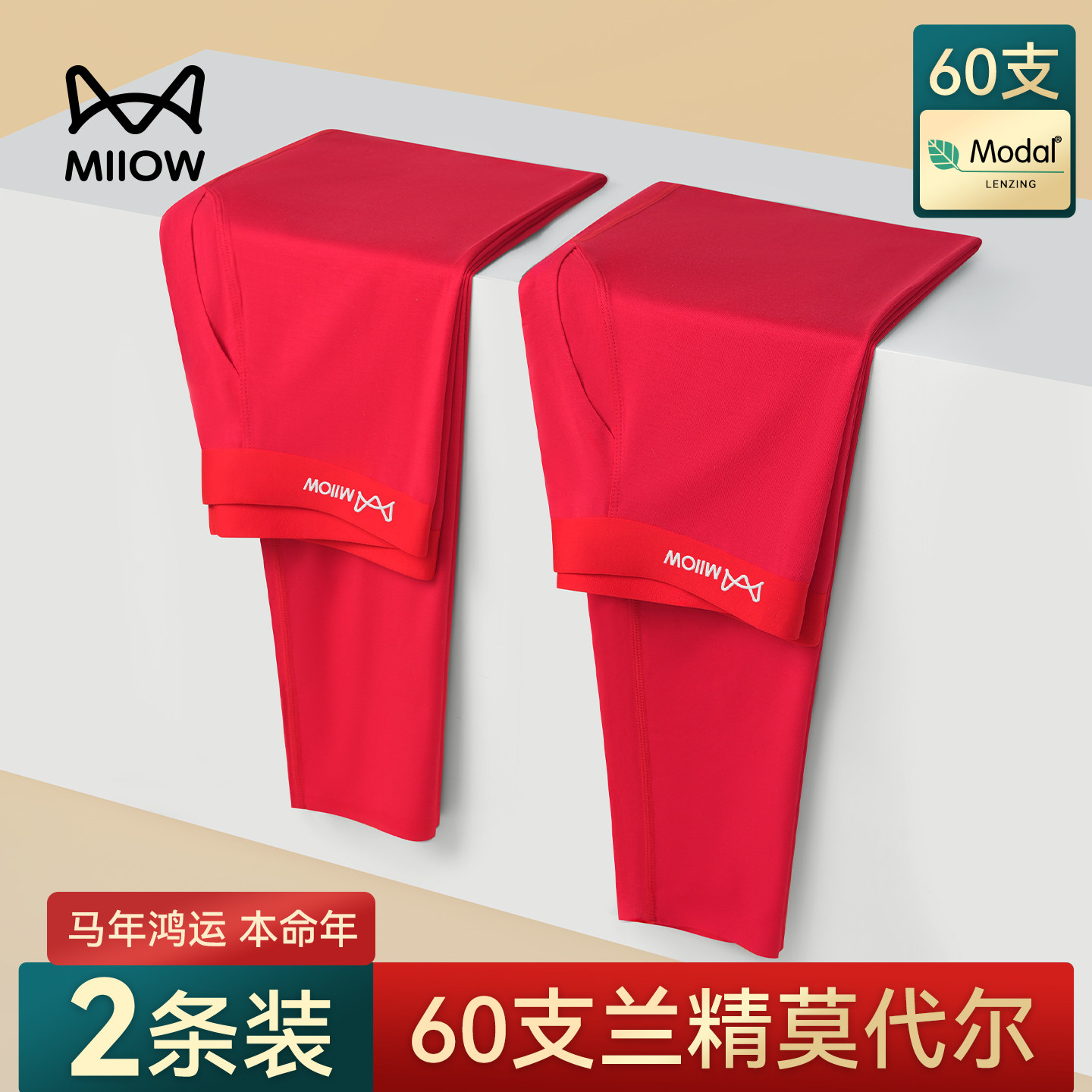 猫人2026男士本命年红色秋裤男薄款莫代尔属马结婚礼物打底保暖裤