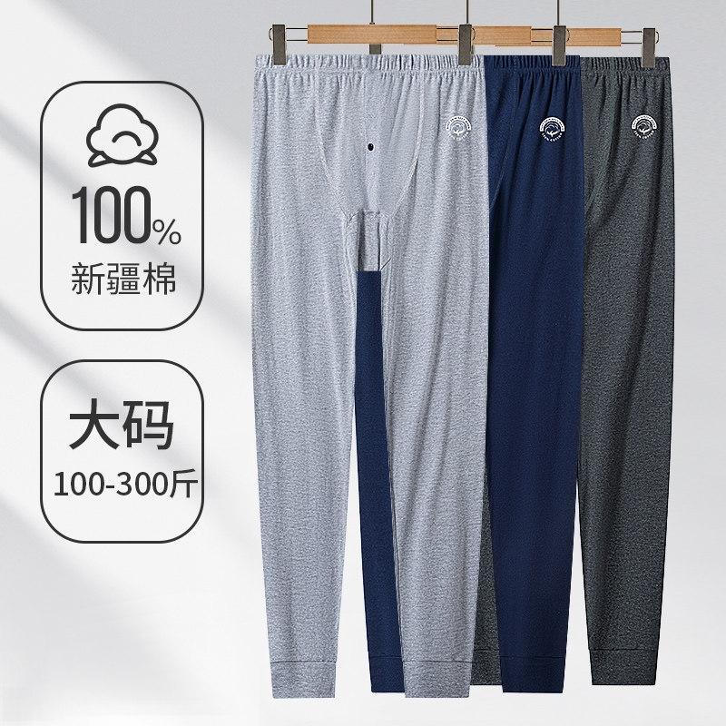 大码纯棉秋裤男薄款宽松内穿衬裤秋冬季男士全棉加肥胖子保暖线裤
