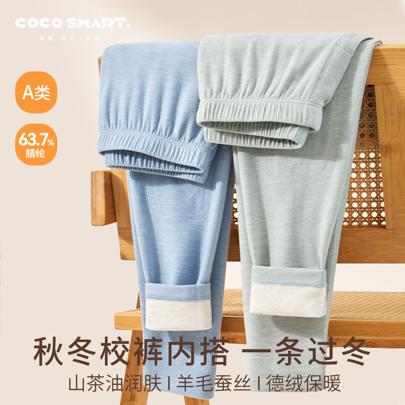 羊毛蚕丝德绒男大童保暖裤校服神器青少年初中学生胖男童加厚秋裤