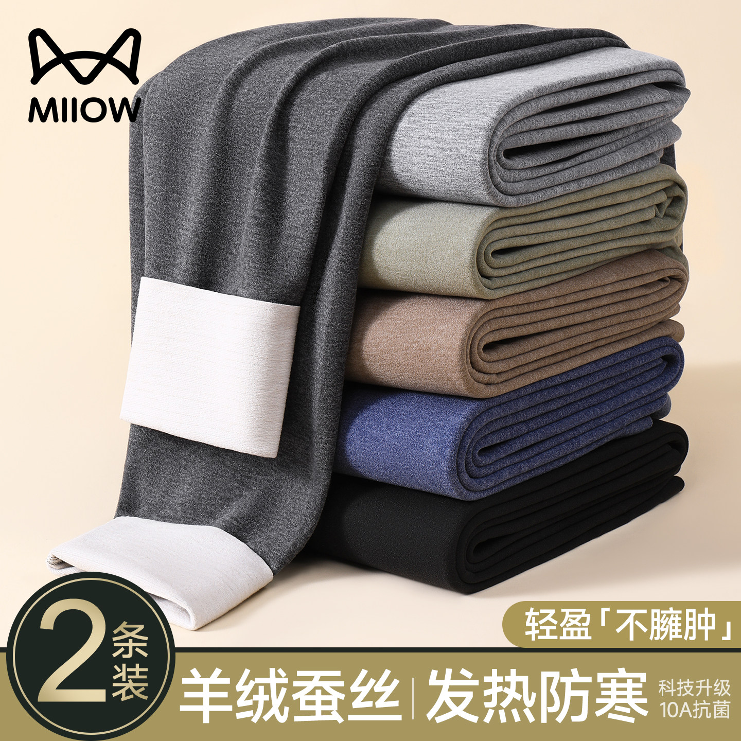 猫人男士秋裤加绒德发热保暖裤加厚含羊毛蚕丝打底线裤绒裤秋冬季