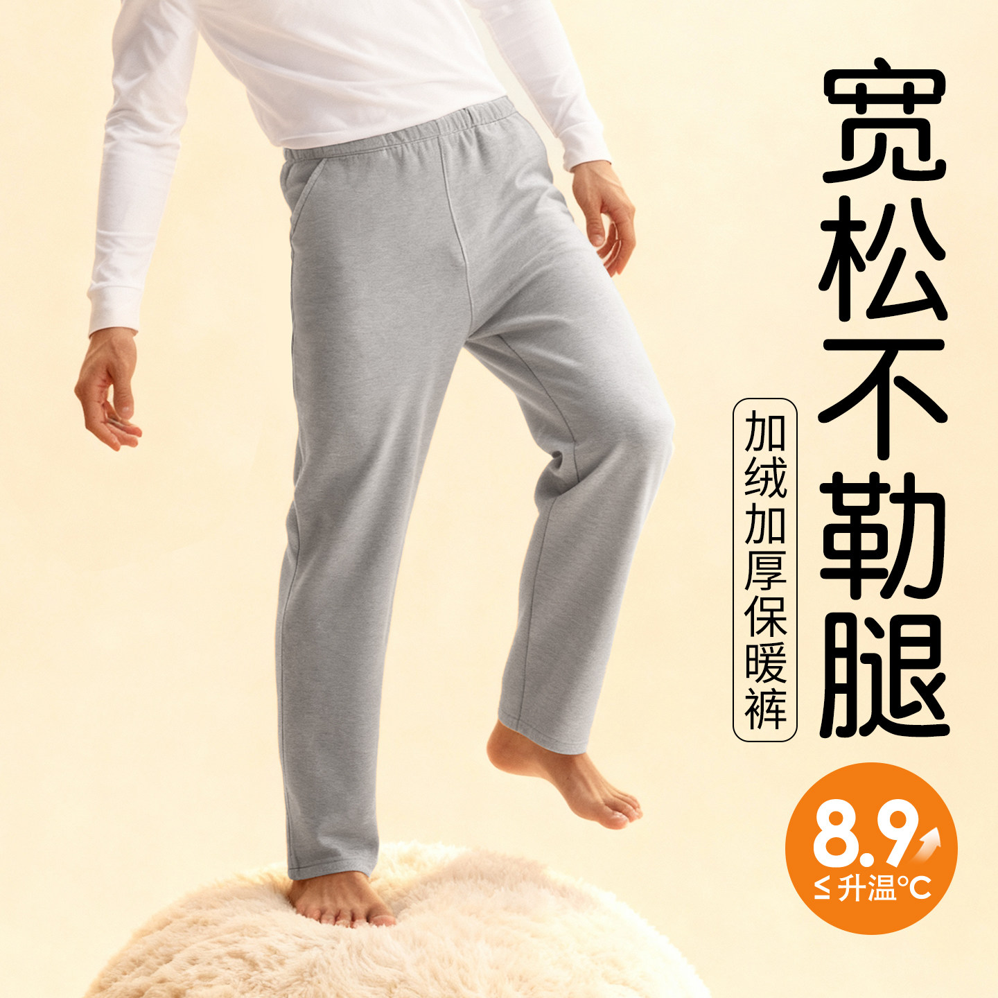 宽松保暖裤男加绒加厚发热秋裤秋冬中老年人直筒不勒腿棉裤可外穿