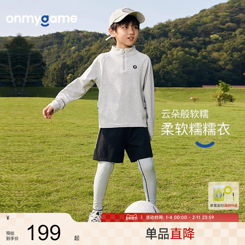 onmygame【糯糯衣】男童运动衣儿童户外训练T恤长袖加绒透气上衣