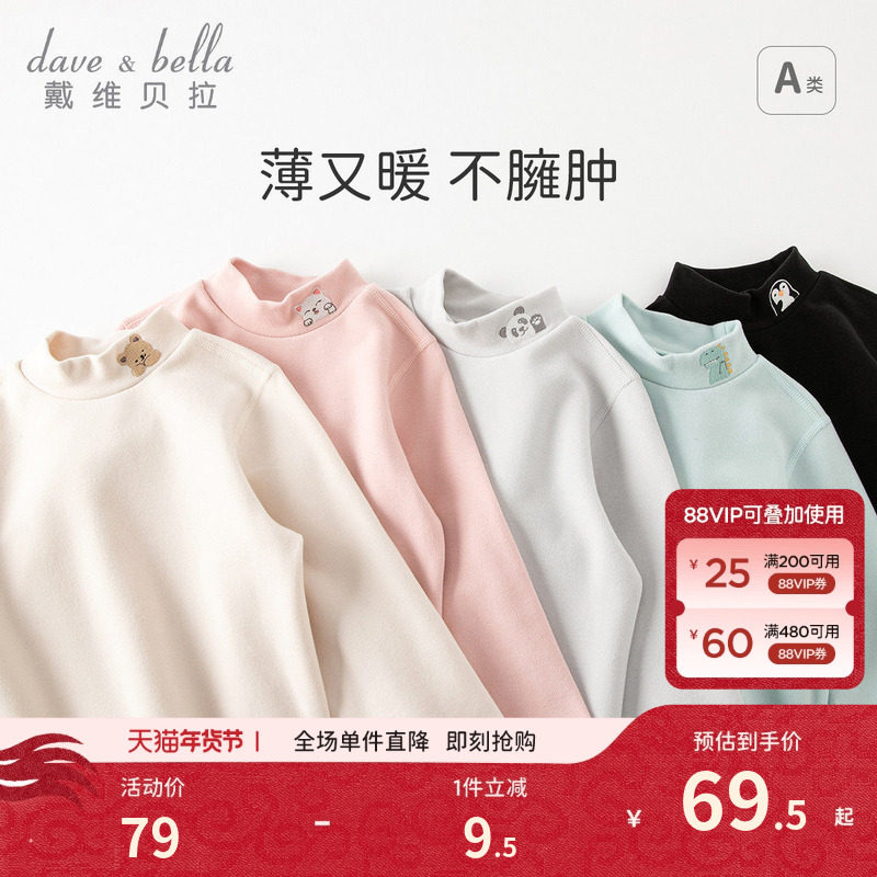 戴维贝拉儿童长袖T恤冬装新款打底衫女童男童上衣宝宝发热半高领