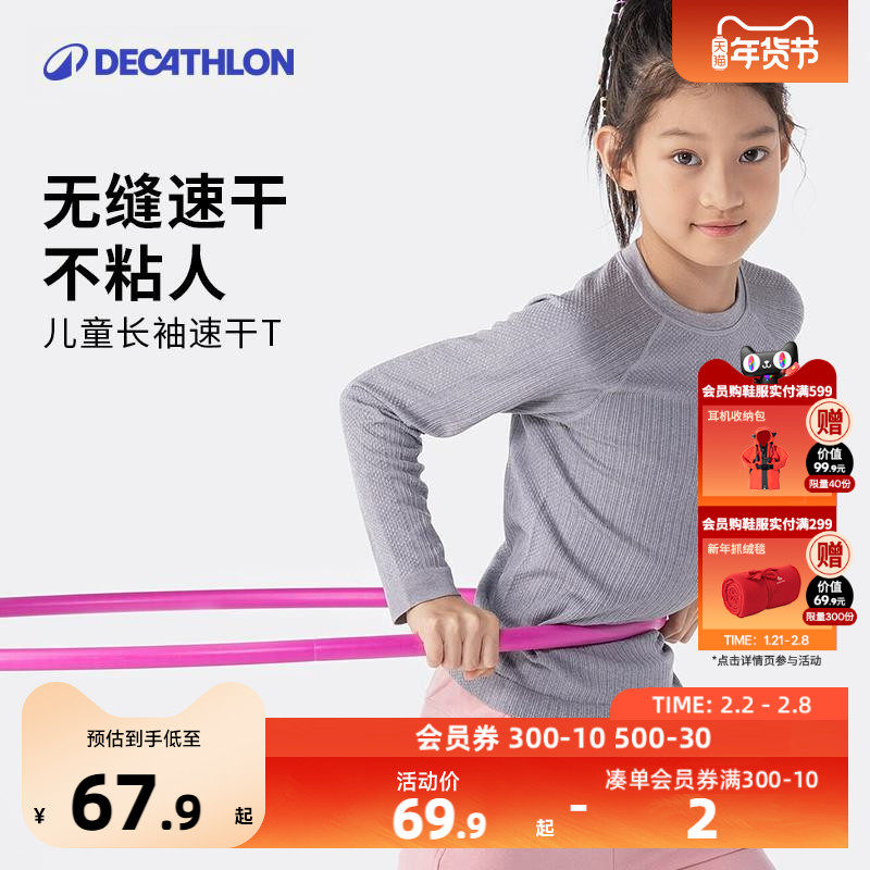 迪卡侬儿童速干衣运动长袖T恤打底衫针织训练男童装女童上衣KIDC