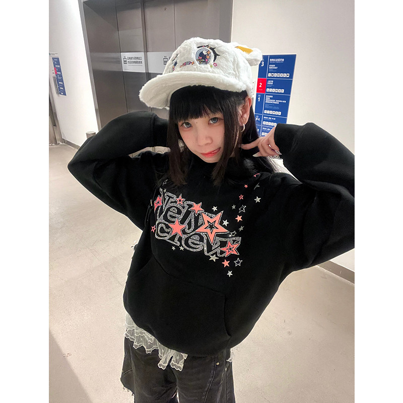 小尼力五角星闪闪惹人爱星星烫钻套头连帽卫衣夏季上衣校园男女bf
