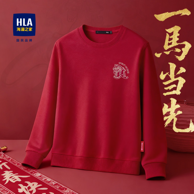 HLA/海澜之家马年贺岁系列卫衣26春秋新款绣花喜庆红色柔软上衣男