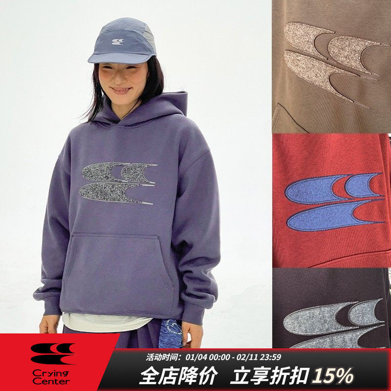 CryingCenterSports2025年秋经典logo贴布刺绣奥绒加绒连帽卫衣