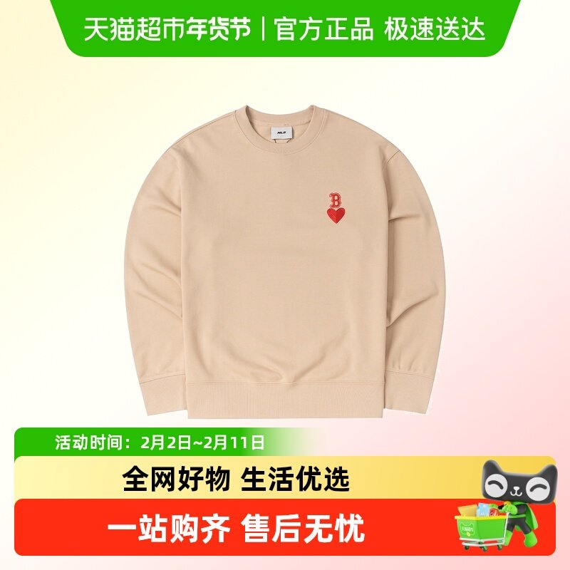 MLB男女情侣款爱心系列简约时尚卫衣宽松透气舒适套头衫休闲长袖