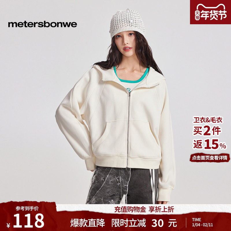 美特斯邦威女士秋冬季新款宽松针织连帽拉链开衫卫衣外套女