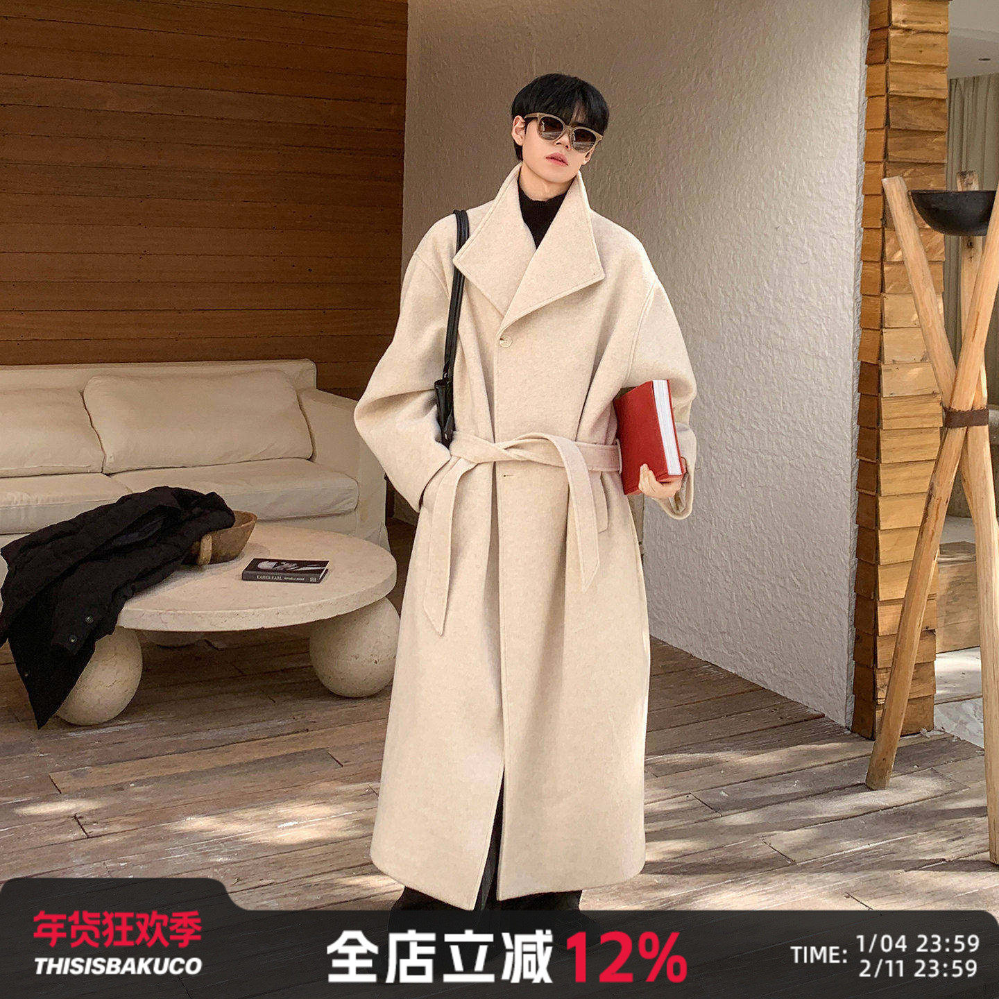 【储格】双面羊毛呢子大衣男中长款情侣带垫肩加厚风衣外套老钱风