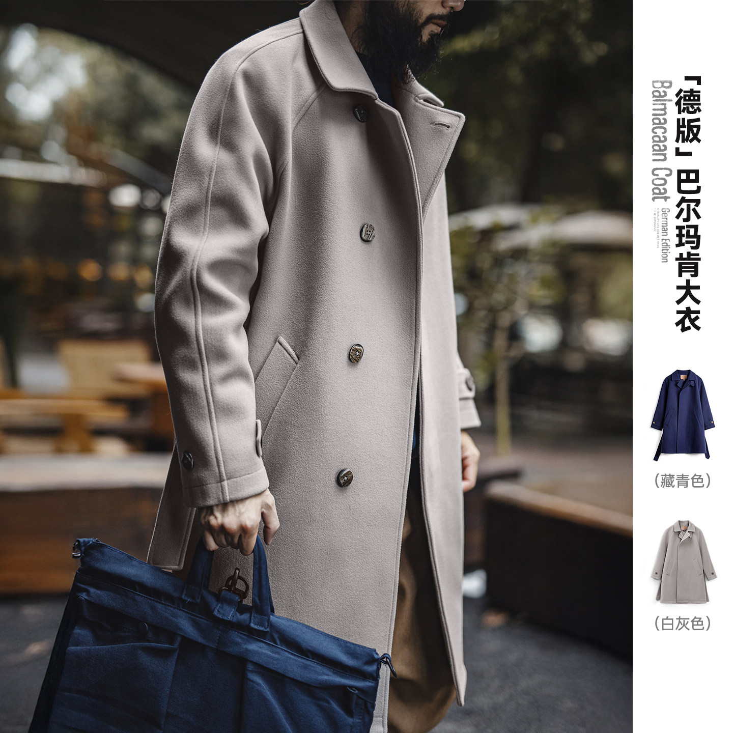 海上公路牦牛绒双面呢大衣男士秋冬季90羊毛气质长款风衣毛呢外套