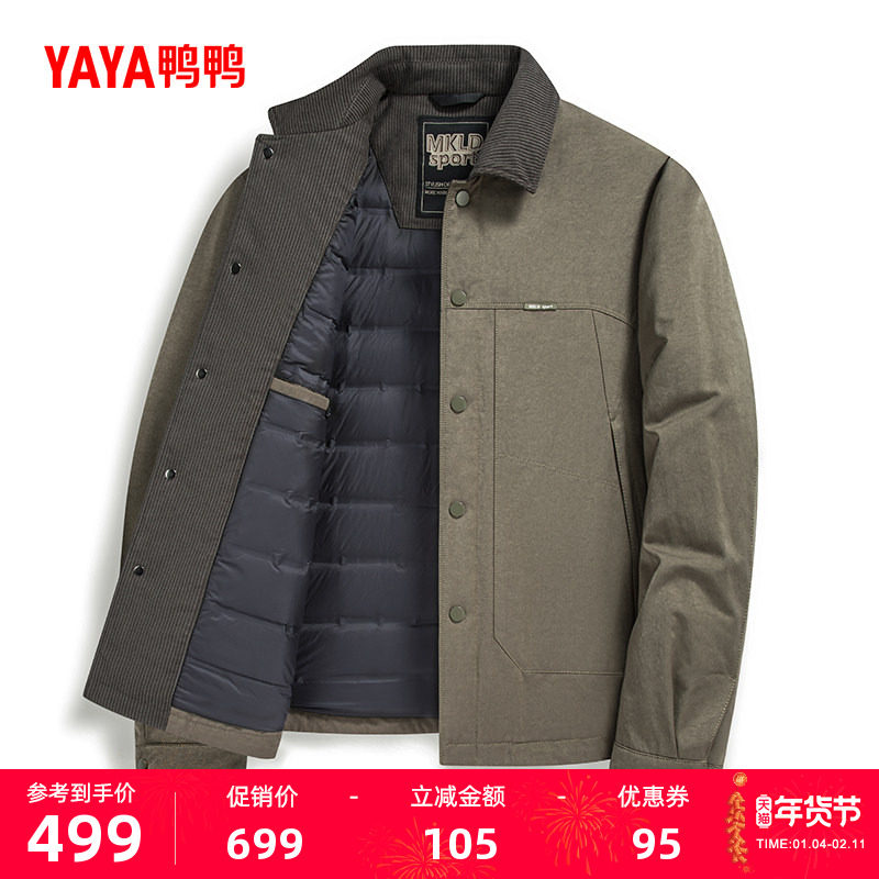 鸭鸭羽绒服男士2025年冬季新品短款立领中老年爸爸保暖加厚外套S