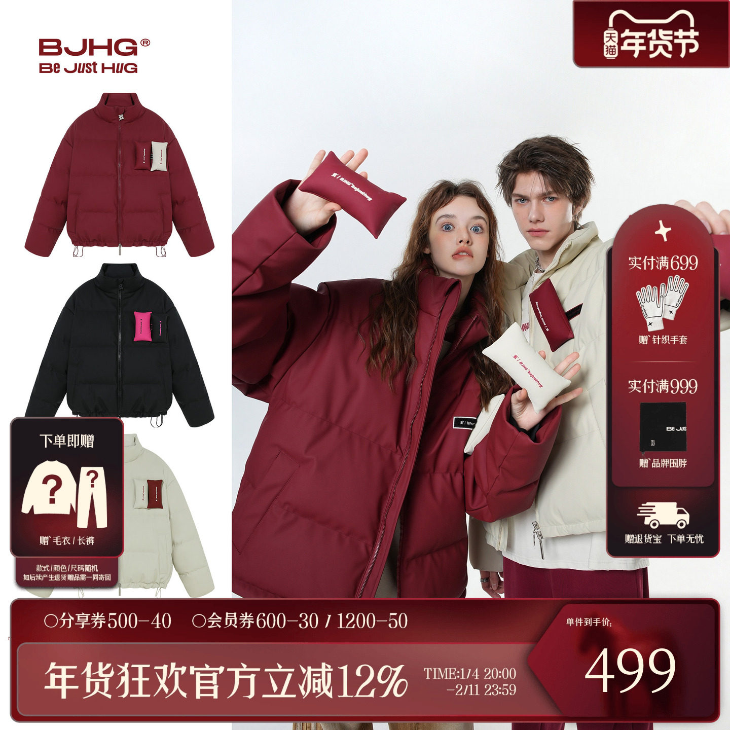 BJHG不计后果贴贴羽绒服男款冬季新款90绒红色保暖情侣短款外套女