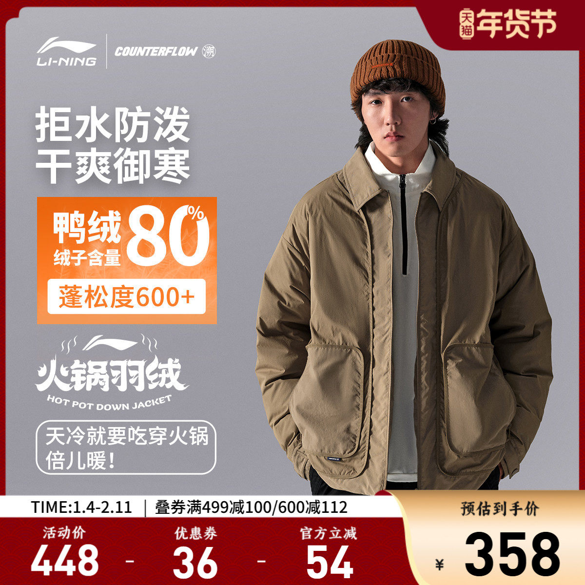李宁CF溯短款短羽绒服男士新款男装翻领宽松保暖冬季鸭绒运动服男