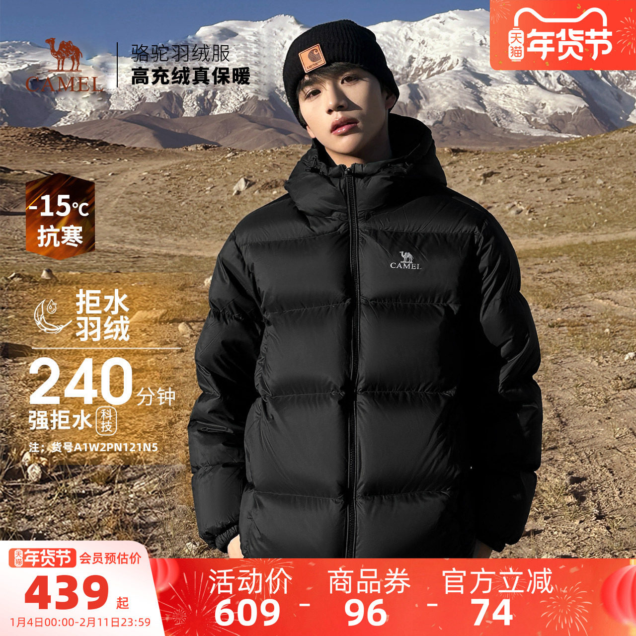 迪丽热巴同款骆驼火山PRO鹅绒服2025新款羽绒服男女冬季加厚外套
