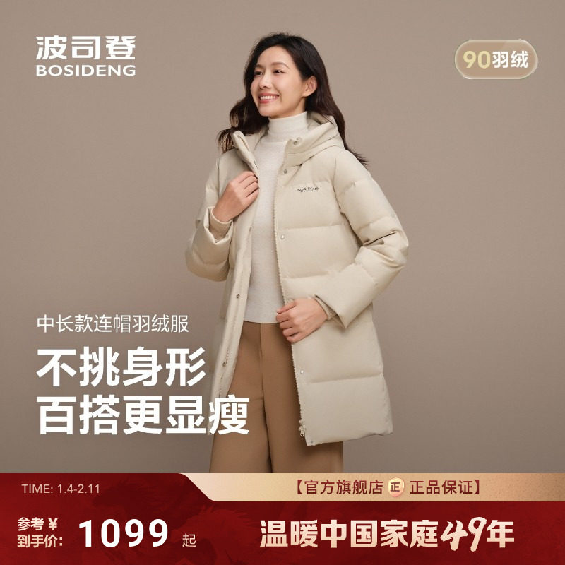 【经典爆款】波司登25新款羽绒服女士中长款纯色连帽加厚保暖通勤