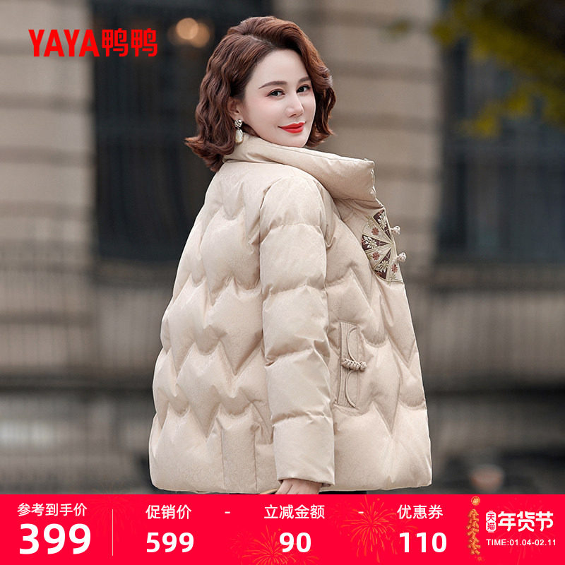 鸭鸭女士羽绒服2025新品女短款立领印花加厚保暖中老年妈妈装外套