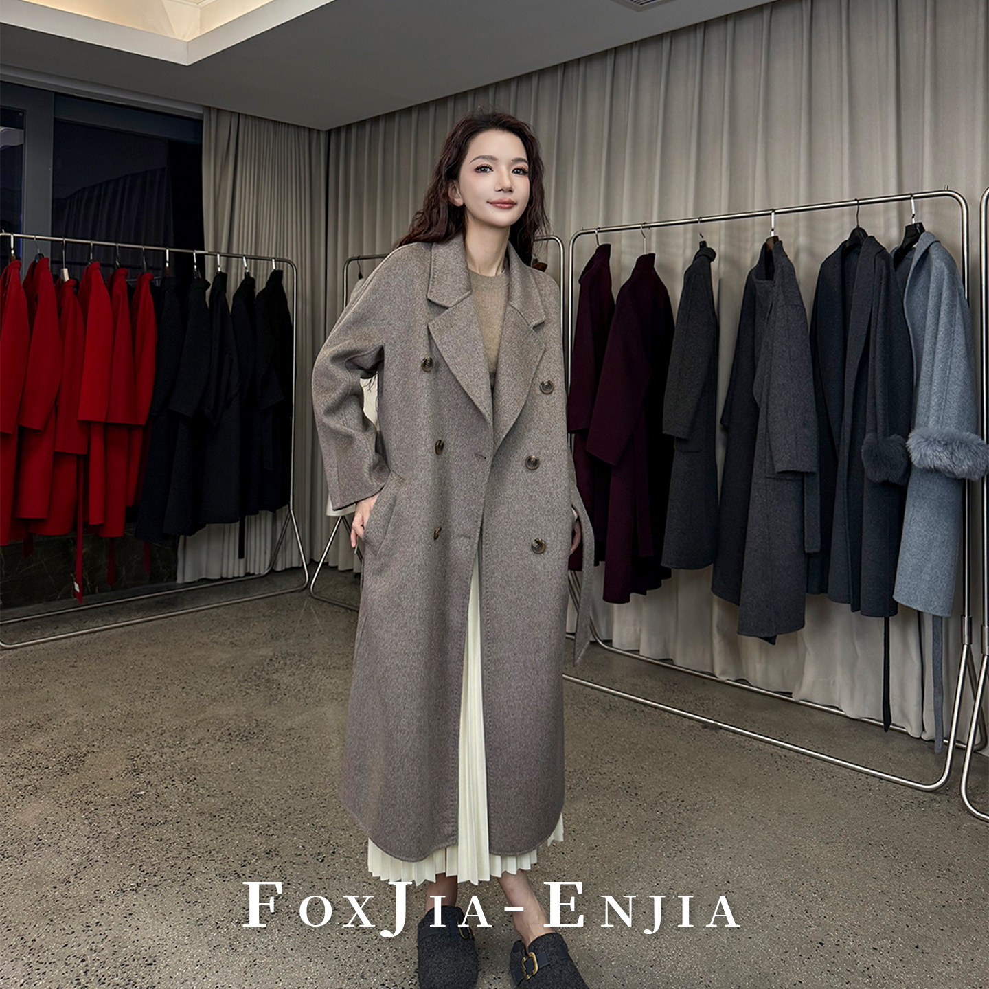 翻领大衣外套嘉绮瑞希高奢山羊绒+羊毛拉绒 冬季保暖百搭中长款女