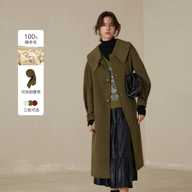 【100%双面呢羊毛大衣】MSLAN中长款大翻领收腰毛呢外套MEDV3309