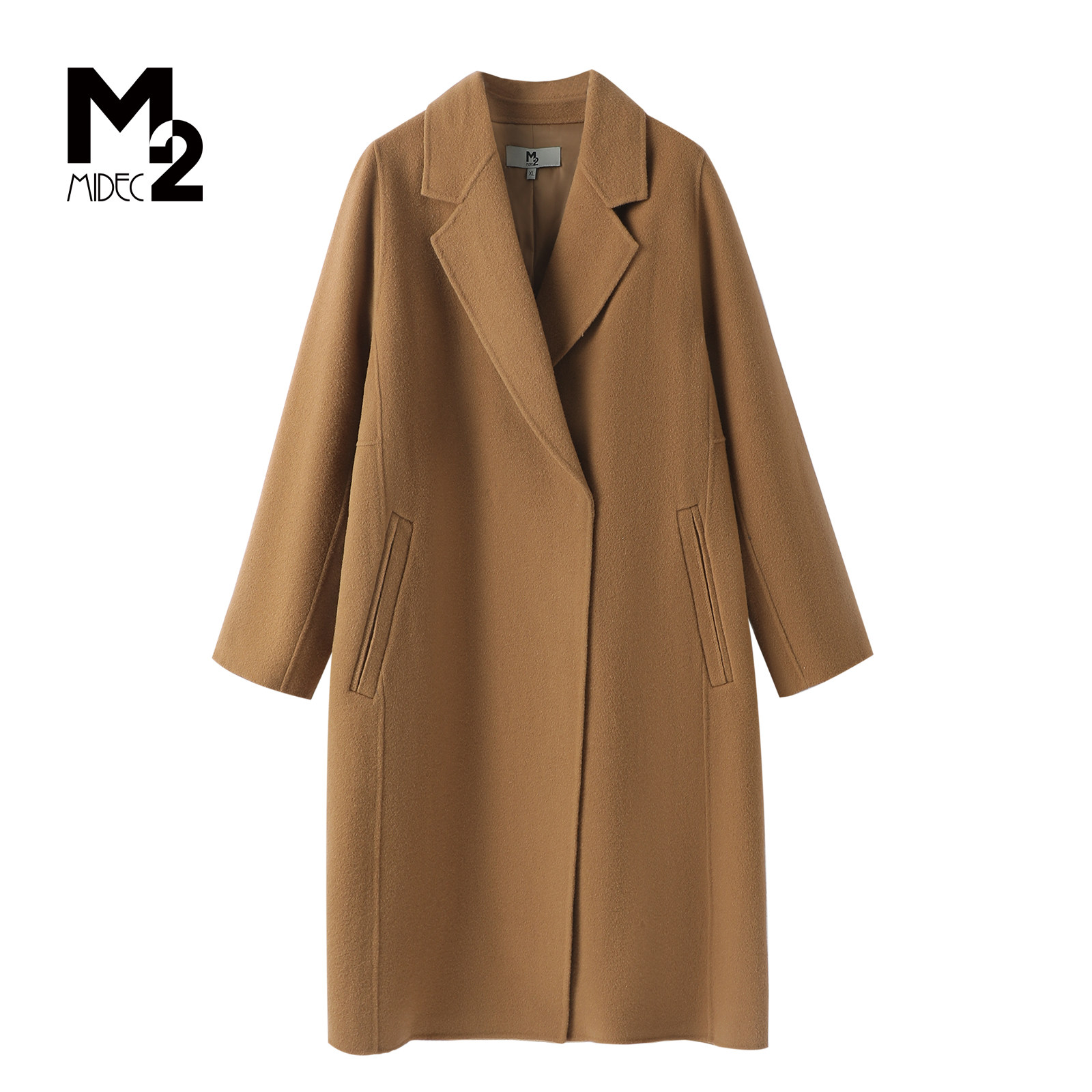M2折扣店冬季极简风羊毛大衣女中长款宽松显瘦毛呢外套双面呢大衣
