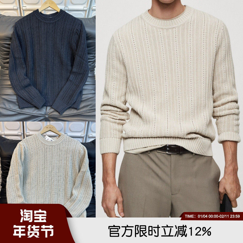 新年搭配伴侣 腔调有型 秋冬男士高端棉质水洗纹理复古针织衫毛衣