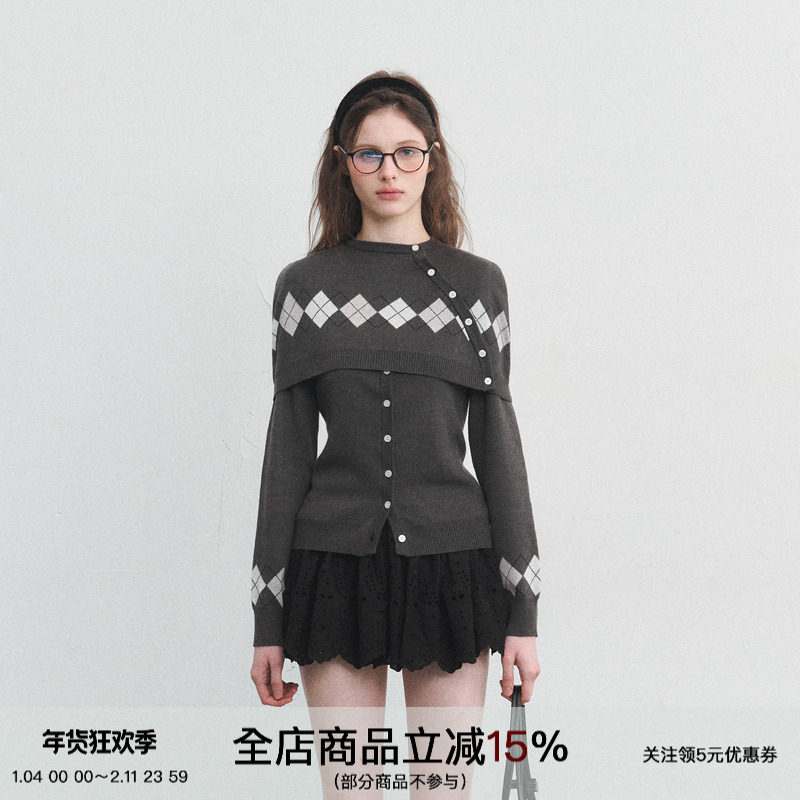 SPEAR YOUTH“格雷小岛”两件套羊毛复古菱格毛衣英伦收腰针织衫