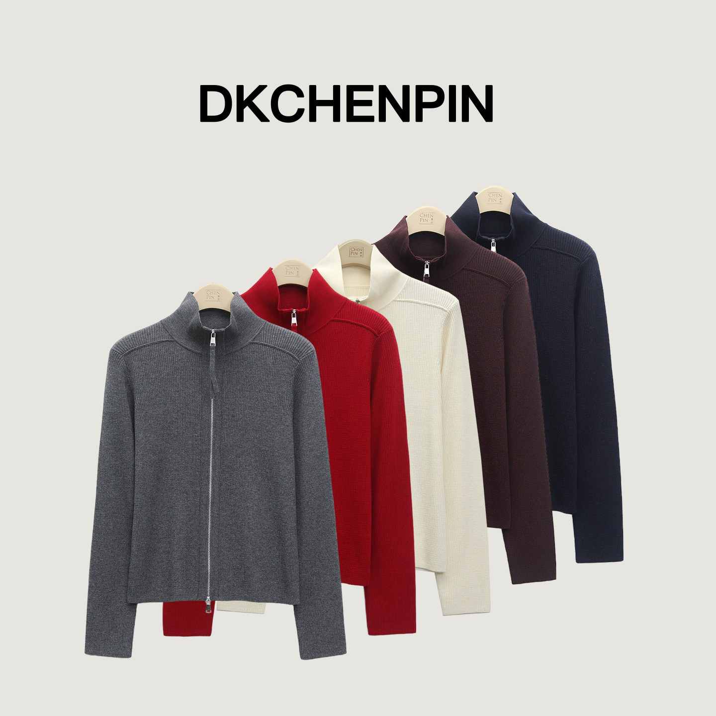 呈品翻领拉链百搭显瘦坑条针织开衫2026春秋新款时尚休闲羊毛衫女