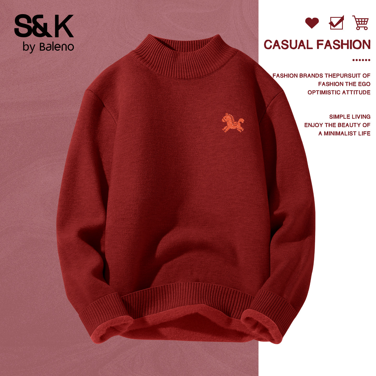班尼路S&K红色毛衣男款冬季2026马年本命年衣服男士加绒针织衫厚A